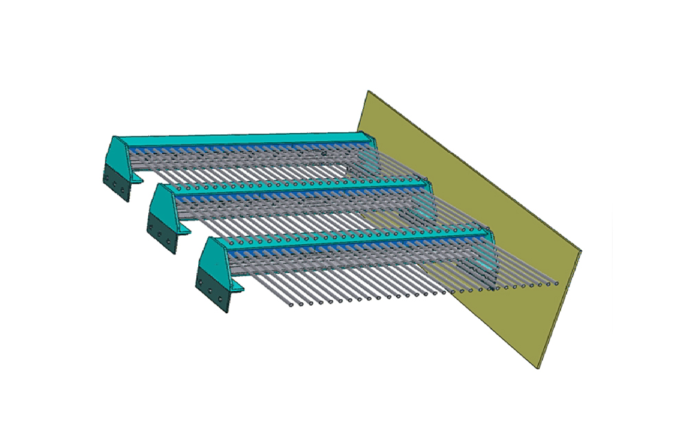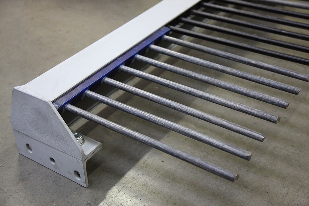 Prstové sito je upevnené v speciálnom nosníku, ktorý sa namontuje medzi bočnice triediča; konštrukcia umožňuje nastavenie sklonu prstového sita; montáž do väčšieho triediča ako 1600 x 4000 mm je nutné riešiť s odbornou firmou; nosník môže byť max. 1600 mm dlhý, pre väčšiu šírku triediča je nutná konštrukčná úprava.