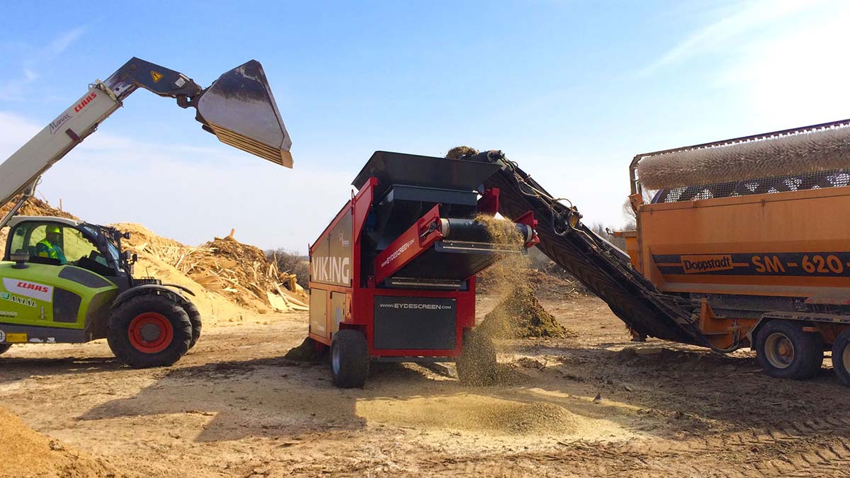 Prenosný, dvojsítny mobilný triedič s podvozkom, určený najmä pre triedenie sypkých materiálov, kompostu, stavebného odpadu, peliet a iných materiálov.